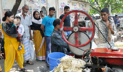 (প্রিয়.কম) যানজটে আটকে থাকা বাসের ভেতরে বসে থাকতে থাকতে বিরক্ত হয়ে নেমে গেলেন রাস্তায়। গরমে অতিষ্ট হয়ে উঠছে শরীর। তাই কতক্ষণ আর থমকে থাকা বাসে বসে থাকা যায়। এবার হেঁটেই যাচ্ছেন গন্তব্য। এদিকে মাথার উপর প্রখর রোদ। রোদের তাপে শরীর থেকে দরদর করে ঝরছে ঘাম। গাছের ছায়ায় একটু জিরিয়ে নেওয়ার সুযোগ নেই পথে। ইট-পাথরের এই শহরের রাস্তায় তো গাছই নেই! তৃষ্ণায় ফেটে যাচ্ছে গলা। হাঁটতে হাঁটতেই পথের পাশে আখের রসের একটা রিকশাভ্যান পাওয়া গেল। আখ ছেঁচে রস বের করে বিক্রি করছে বিক্রেতা। গরম থেকে একটু তৃপ্তি পেতে অনেকেই ভিড় করছে সেখানে। আপনিও এগিয়ে গেলেন গলা ভেজাতে, তৃষ্ণা মেটাতে। এক গ্লাস ঠাণ্ডা আখের রস খেয়ে যেন ভেতরটা কিছু হলেও শীতল একটা খবর জানান দিল। কিন্তু একবার ভেবে দেখছেন কী, এই রসের কারণে আপনার ভেতরে রোগবালাই বাসা বাঁধতে পারে। একটু খেয়াল করলেই দেখা যাবে, ভ্যানের উপর রাখা মিষ্টি আখে মাছি ভনভন করছে। ফুটপাতে ময়লা ও মানুষের বর্জ্যে যে মাছিগুলো বিশ্রাম নেয়! সেগুলোই বিশ্রাম শেষে আখের গাদায় স্বাদ নিতে চলে আসছে। কিন্তু এসব চোখেই পড়ছে না কারো। আখগুলো প্রথমে মাটির উপরেই পরিষ্কার করা হচ্ছে। এরপর সেগুলো ছেলা হচ্ছে সেখানেই। তারপর যে পানি দিয়ে আখ ভিজিয়ে রাখে দীর্ঘক্ষণ, সেই পানির বিশুদ্ধতার কোনো নিশ্চয়তা নেই। আবার বেশিরভাগ সময়েই পানি সরবরাহের সুবিধা থাকে না। তাই ছোট বালতিতে থাকা সামান্য পানি দিয়েই সবার খাওয়া গ্লাসটা ধুয়ে আখের রস খেতে দেয় খদ্দেরদের।