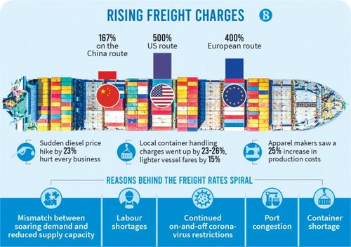 প্রধান সমুদ্র রুটগুলোতে, বিশেষ করে বাংলাদেশ-চীন রুটে ফ্রেইট চার্জ বা পণ্য পরিবহনের খরচ বৃদ্ধি স্থানীয় ব্যবসাগুলোর জন্য গুরুতর এক পরিস্থিতি সৃষ্টি করেছে। কারণ কোভিড-১৯ মহামারিতে বিগত প্রায় দুই বছর ধরে ব্যবসায় প্রতিষ্ঠানগুলো ইতোমধ্যেই অর্থনৈতিক চ্যালেঞ্জের সম্মুখীন।