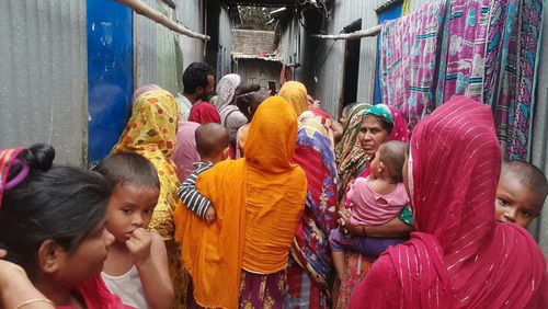আজ সোমবার বিকেলে শ্রমিক কলোনিতে গিয়ে দেখা যায়, কলোনির ছোট ছোট টিন শেডের ঘরে তালা ঝুলছে। স্বজন হারানোর শোকে অনেকেই বাকরুদ্ধ হয়ে রয়েছেন। অ্যাম্বুলেন্স বা কোনো গাড়ির শব্দ পেলেই মনে করছেন লাশ এসেছে। বাসা থেকে দৌড়ে যাচ্ছেন সড়কে। কেউ মুখ ঢেকে কাঁদছেন, আবার কেউ টিনের ঘরে হেলান দিয়ে দাঁড়িয়ে আছেন। অনেকের ঘরেই রান্নার কাজ বন্ধ হয়ে আছে। কোলের শিশুরা খাবারের জন্য কাঁদছে। প্রতিবেশীরা কিছু দিলে খাচ্ছেন।