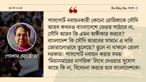 সৌদি আরবে অবস্থানরত ৬৯ হাজার রোহিঙ্গাকে বাংলাদেশ পাসপোর্ট দিতে যাচ্ছে। খুবই প্রাসঙ্গিক প্রশ্ন, বাংলাদেশ কেন রোহিঙ্গাদের পাসপোর্ট দেবে? পাসপোর্ট দেওয়া মানে তো নাগরিকত্ব দেওয়া। রোহিঙ্গারা মিয়ানমারের নাগরিক। বাংলাদেশকে কেন তাদের পাসপোর্ট দিতে হবে?