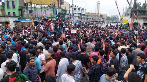 কুষ্টিয়ায় বৃষ্টির মধ্যেই ৪ কিলোমিটার হেঁটে বিক্ষোভকারীদের মিছিল