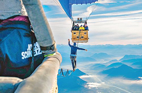 আকাশে আট হাজার ফুটের বেশি উচ্চতায় ভাসছে দুটি গ্যাস বেলুন। দুই বেলুনের মাঝখানে ঝুলছে একটি দড়ি। সেটির ওপর দিয়ে হেঁটে এক বেলুন থেকে অন্য বেলুনে যাচ্ছেন আপনি। একবার এই দৃশ্য কল্পনা করে দেখুন তো, নিশ্চয়ই দম বন্ধ হয়ে আসছে।