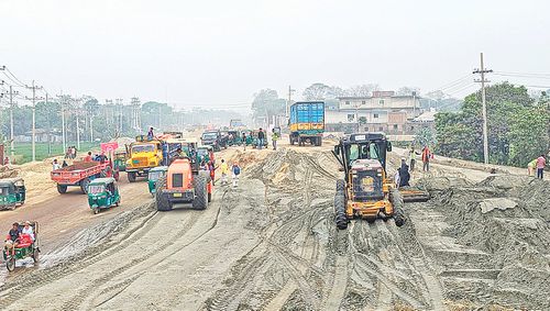 ঢাকা-সিলেট মহাসড়ক চার লেনে উন্নীত করার কাজ চলছে। এই সড়কের নারায়ণগঞ্জ থেকে নরসিংদী পর্যন্ত হাটবাজারের কারণে এমনিতেই চাপ থাকে।