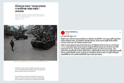 ‘রিফাইন্ড (সংশোধিত) আওয়ামী লীগ’ গঠনে সেনাবাহিনীর পক্ষ থেকে চাপ দেওয়ার বিষয়ে জাতীয় নাগরিক পার্টির মুখ্য সংগঠক হাসনাত আবদুল্লাহ সম্প্রতি ফেসবুকে যে পোস্ট দিয়েছেন, তাতে প্রতিক্রিয়া জানিয়েছে সেনাবাহিনী সদর দপ্তর। সুইডেনভিত্তিক নেত্র নিউজের এক প্রতিবেদনে এ প্রতিক্রিয়া জানানোর তথ্য প্রকাশ করা হয়েছে। গতকাল শনিবার এ প্রতিবেদন প্রকাশিত হয়। প্রতিবেদনে সেনাসদরকে উদ্ধৃত করে বলা হয়েছে, হাসনাত আবদুল্লাহর পোস্ট ‘সম্পূর্ণ রাজনৈতিক স্ট্যান্টবাজি বৈ অন্য কিছু নয়’।
