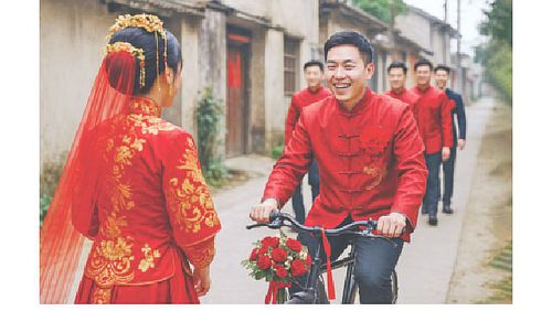 বিয়ে করতে বাইসাইকেলে চেপে কনের বাড়িতে হাজির হয়েছেন বর; গত শতাব্দীর আশির দশকে এমন দৃশ্য হরহামেশা দেখা গেলেও এখন এ দৃশ্য বিরল। অতিথিদের অতীতের সেই কথা মনে করিয়ে দিতেই হয়তো বাইসাইকেলে চেপে কনের বাড়িতে হাজির হয়েছিলেন এক চীনা বর।