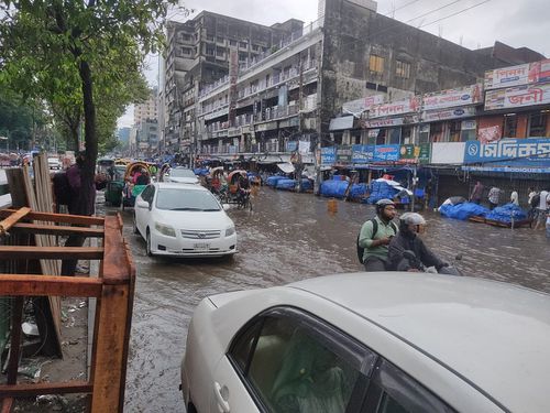 রাজধানী ঢাকায় গতকাল বৃহস্পতিবার সকাল থেকে সারা রাত ধরে চলেছে বৃষ্টি। আর আজ শুক্রবার বৃষ্টি হয়েছে থেমে থেমে। এই বৃষ্টির কারণে অনেক এলাকার রাস্তাঘাট পানিতে তলিয়ে যায়। আজ দুপুরের পর বিভিন্ন এলাকার সড়ক থেকে পানি নামলেও নিউমার্কেট এলাকার সড়কে এখনো পানি জমে আছে। এ কারণে ভোগান্তিতে পড়েছেন স্থানীয় ব্যবসায়ী, পথচারী ও সাধারণ মানুষ।