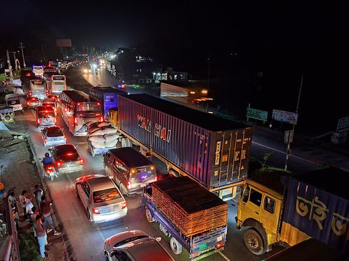 ঢাকা-চট্টগ্রাম মহাসড়কে সকাল থেকে দুপুর পর্যন্ত যানজট ছিল। মহাসড়কের কুমিল্লার দাউদকান্দি অংশে আজ সন্ধ্যা থেকে আবার যানজট দেখা দেয়। ঢাকা-টাঙ্গাইল মহাসড়কে গাজীপুরের চন্দ্রায় একটি গাড়িতে আগুন লাগলে ওই সড়কে কিছু সময়ের জন্য যানজট দেখা দেয়।