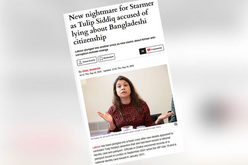 গাইলস শেলড্রিক লিখিত প্রতিবেদনের শিরোনামে ব্রিটিশ প্রধানমন্ত্রীর কথা উল্লেখ করে বলা হয়েছে, ‘স্টারমারের জন্য নতুন দুঃস্বপ্ন: টিউলিপ সিদ্দিকের বিরুদ্ধে বাংলাদেশি নাগরিকত্ব নিয়ে মিথ্যা বলার অভিযোগ’। তবে এক্সপ্রেস মূলত প্রকাশিত প্রতিবেদনের ওপর ভিত্তি করেই প্রতিবেদনটি লিখেছে।