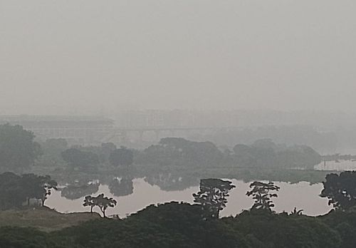 রাজধানীতে আজ শনিবার সকাল থেকেই আকাশ ছিল ঘোলাটে। খানিকটা মনে হচ্ছিল যেন কুয়াশা পড়ছে। এর সঙ্গে ছিল প্রচণ্ড গরম আর গুমোট ভাব। সকাল ৬টা থেকে প্রায় ১০টা পর্যন্ত এমন আবহাওয়া দেখা গেছে।