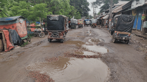 সারা দেশে প্রায় ১ হাজার ৪৭৮ কিলোমিটার সড়ক-মহাসড়ক বর্তমানে ভাঙাচোরা। খানাখন্দ, পিচ-পাথর উঠে যাওয়া ও ছোট-বড় গর্তে ভরা সড়কে যানবাহন চলছে ঝুঁকি নিয়ে, সৃষ্টি হচ্ছে দীর্ঘ যানজট। যাত্রায় সময়ও লাগছে বেশি। ভাঙা সড়কের কারণে ঢাকা থেকে সিলেট ও রংপুর যাতায়াতে সময় লাগছে আগের চেয়ে দ্বিগুণ। ফলে ভোগান্তি পোহাতে হচ্ছে যাত্রী ও চালকদের।