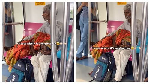 মেট্রোতেই ক্লান্ত মহিলা মাথা এলিয়ে দিলেন স্বামীর কোলে, ভাইরাল ভিডিয়োয় মন গলেছে নেটিজ়েনদের