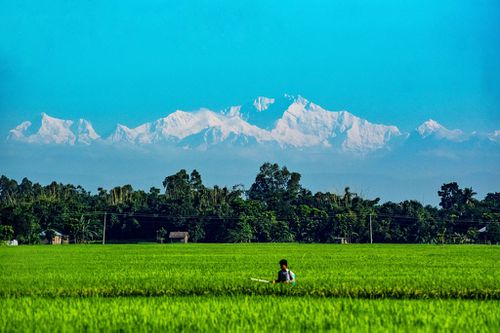 শরতের ভোর। আকাশজুড়ে শান্ত নীলিমা। শিশিরভেজা ধানের শিষ হাওয়ায় নাচছে। বাতাসে মাটির ঘ্রাণ মিশে যাচ্ছে। হঠাৎ উত্তর আকাশের ধূসর মেঘের আড়াল ভেদ করে উঁকি দিল এক অপূর্ব দৃশ্য—হিমালয়ের পর্বতশৃঙ্গ কাঞ্চনজঙ্ঘা।