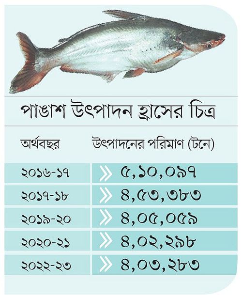 মৎস্যচাষি ও বিশেষজ্ঞরা বলছেন, মাছের খাবারের মূল্য বৃদ্ধি পাওয়ায় উৎপাদন খরচ বেড়ে গেছে। আর পাঙাশ মাছে রোগের প্রকোপ তথা মড়ক লাগার কারণেও মাছচাষিরা ক্ষতিগ্রস্ত হচ্ছেন। সে জন্য অনেকেই পাঙাশ চাষ ছাড়েন।