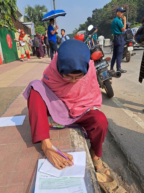 নোয়াখালীর বেগমগঞ্জের শারমিন আজ পরীক্ষা দিয়েছেন রাজধানীর মোহাম্মদপুরে ঢাকা রেসিডেনসিয়াল মডেল কলেজ কেন্দ্রে। সকাল ৯টার দিকে কলেজের সামনে বসেই কথা হলো শারমিনের সঙ্গে।