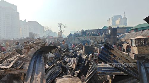 নির্ঘুম রাত কাটিয়ে ভোরের আলো ফুটতেই মেয়েকে বোনের কাছে রেখে নিজের পোড়াঘরে এলেন নাজমা বেগম। পুড়ে ভেঙে পড়া টিন আর ছাইয়ের গাদার মধ্যে হাতড়ে বেড়াচ্ছিলেন তিনি—১৪ বছরের সংসারের কিছু পাওয়ার আশায়।