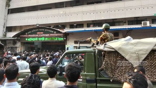 পরে সেনাবাহিনীর সদস্যরা মির্জা আব্বাসকে নিরাপত্তা দিয়ে হাসপাতালের ভেতরে প্রবেশ করার সুযোগ করে দেন। এ সময়ে ইনকিলাব মঞ্চের নেতাকর্মীরা আরও নানা স্লোগান দিতে থাকেন।