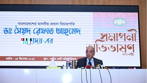 সুপ্রিম কোর্ট অডিটোরিয়ামে অনুষ্ঠিত অভিভাষণে প্রধান বিচারপতি বলেন, এই সত্য অস্বীকার করা যায় না যে, বিভিন্ন রাজনৈতিক পর্বে, বিচার বিভাগ অসাংবিধানিক ক্ষমতা, অপশাসন ও রাষ্ট্রীয় কপট-কৌশলের অঘোষিত সহযোগী হিসেবেও পরিগণিত হয়েছে। দুঃশাসনের বলয়কে আবরণ দিয়েছেন অনেক বিচারক। অন্যায় ও অবিচারে প্রত্যক্ষ ও পরোক্ষভাবে সম্পৃক্ত হয়েছেন। রাষ্ট্রের অন্যান্য প্রতিষ্ঠানের সঙ্গে বিচারকদের এই নৈতিক বিচ্যুতি জনসাধারণকে শেষ পর্যন্ত জুলাই-আগস্টের রক্তক্ষয়ী প্রতিরোধের সিদ্ধান্ত নিতে বাধ্য করার অন্যতম অনুঘটক বলে আমি মনে করি।