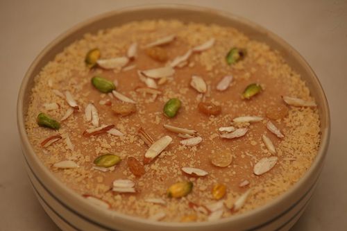 - পরিবেশন পাত্রে ঢেলে মাওয়া গুঁড়া, পেস্তা বাদাম দিয়ে সাজিয়ে ঠান্ডা হলে পরিবেশন করতে হবে।