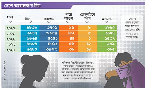 দেশে দিনে গড়ে ৪০টি আত্মহত্যা, সবচেয়ে বেশি যশোরে