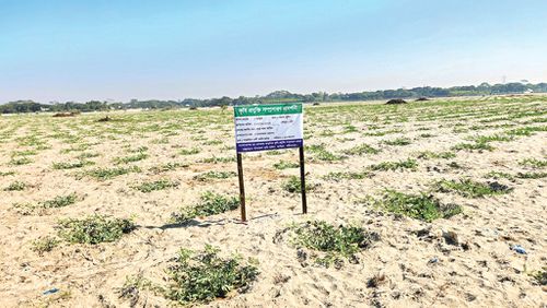 পদ্মা সেতুর দক্ষিণ প্রান্ত-সংলগ্ন মাদারীপুরের শিবচর এবং শরীয়তপুরের জাজিরা উপজেলার জায়গা নিয়ে বস্ত্র ও পাট মন্ত্রণালয় তাঁতপল্লি নির্মাণের কাজ শুরু করে ২০১৮ সালের শেষের দিকে। কাজের বেশ অগ্রগতিও হয়েছিল। তবে ২০২৪ সালের ৫ আগস্টের পর বন্ধ হয়ে যায় প্রকল্পের কাজ। গত দেড় বছরে আর কোনো কাজ হয়নি। এখন প্রকল্পটির ভবিষ্যৎ নিয়ে স্থানীয়দের মধ্যে দেখা দিয়েছে নানা প্রশ্ন। তাঁরা দ্রুত নির্মাণকাজ শুরুর দাবি জানিয়েছেন। এদিকে অধিগ্রহণ করা বিস্তীর্ণ জমিতে এখন চাষ হচ্ছে তরমুজ।