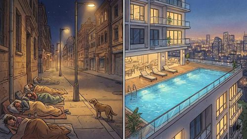 ঢাকার ওসমানী উদ্যানে আবছা আলোয় গৃহহীন এক বৃদ্ধ যখন একটি পলিথিন টেনে নিজের ও স্ত্রীর শরীর ঢাকার চেষ্টা করেন, তখন কি তিনি জানেন, তারই দেশের নীতিনির্ধারকদের জন্য ৯ হাজার ৩০ বর্গফুটের রাজকীয় ফ্ল্যাট তৈরির পরিকল্পনা চলছে? নদীভাঙনে সর্বস্ব হারিয়ে তিনি আজ ফুটপাতে আশ্রয় নিয়েছেন, কিন্তু তারই সরকারের গুরুত্বপূর্ণ ব্যক্তিদের জন্য বেইলি রোড ও মিন্টো রোডে ৭৮৬ কোটি টাকা ব্যয়ে বিলাসবহুল আবাসন গড়ে তোলা হচ্ছে।