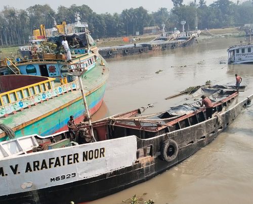 ভৈরব নদে ঘাটে বাঁধা রশি ছিঁড়ে ডুবে গেছে কয়লাবাহী জাহাজ