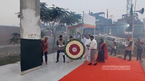 যশোরে বঙ্গবন্ধুর নাম কাপড়ে ঢেকে মলিন বিজয়স্তম্ভে শ্রদ্ধাঞ্জলি, ক্ষোভ